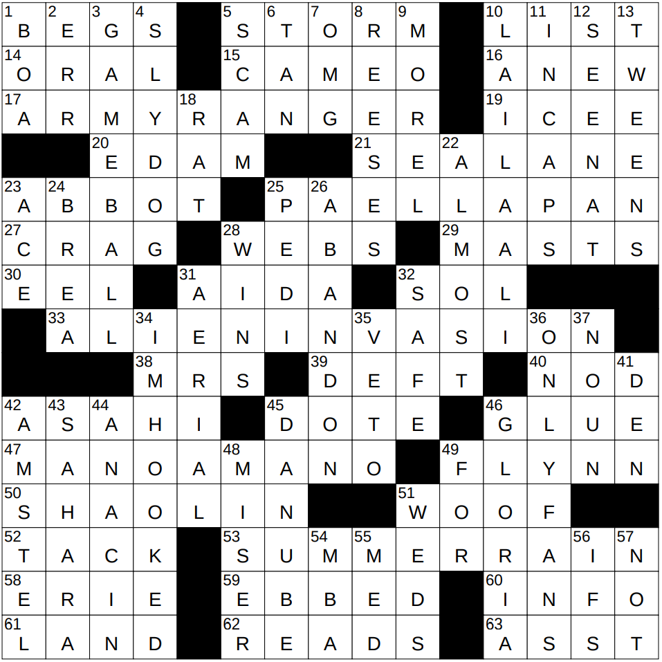 One thought on “1001-25 NY Times Crossword 1 Oct 25, Wednesday”
