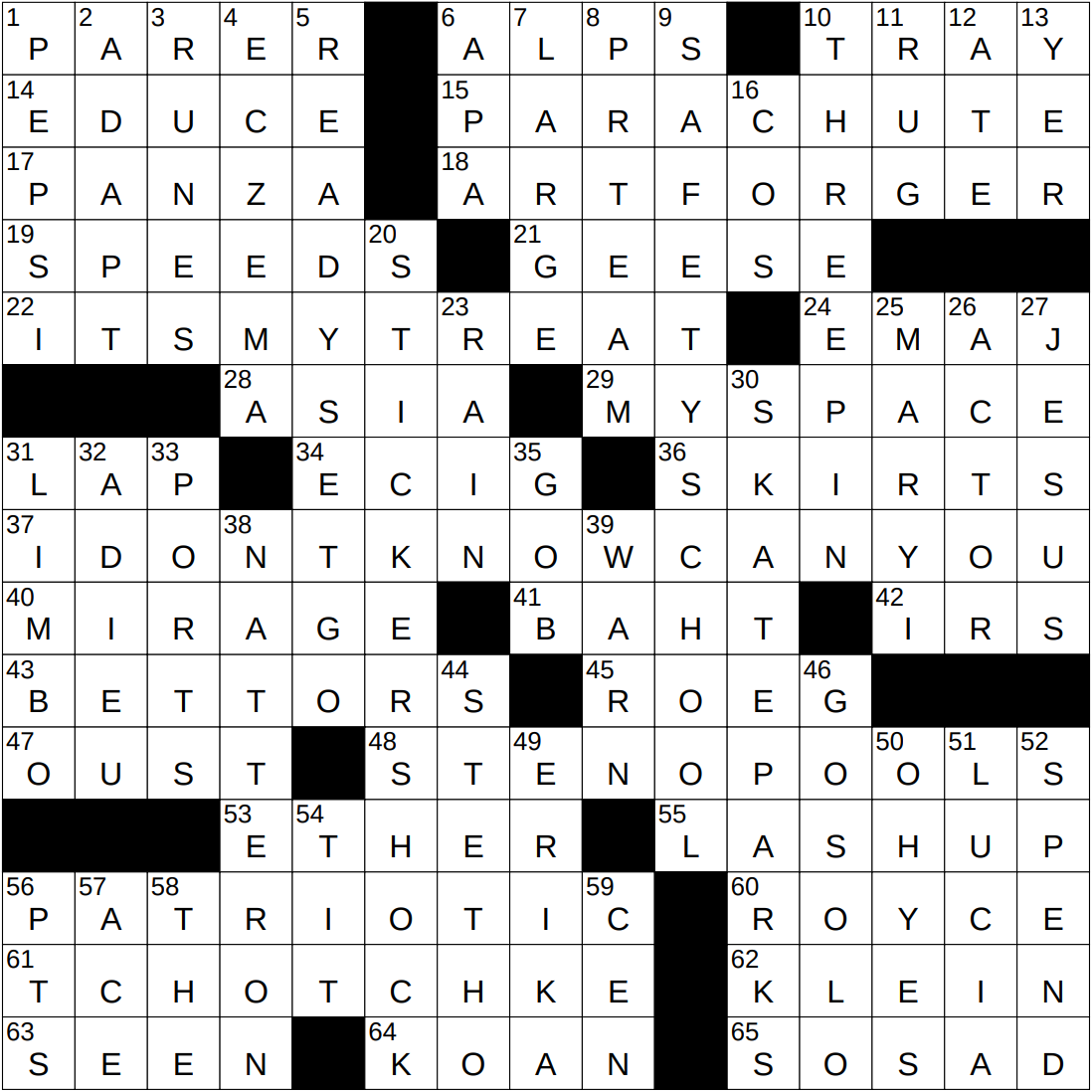 33:56, no errors. Hard one for me. Spent a lot of time in the lower right, mostly because I’d never heard of LASH-UP, Clarence ROYCE, or Ezra KLEIN and it took a while to come up with the crossing entries. Oh, well … stuck it out and got ‘er done … that mule gene came through for me … 🙂.
