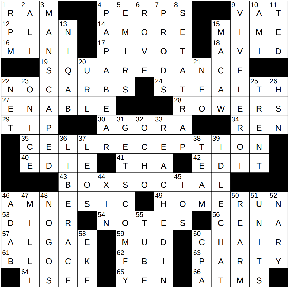 61A With 63-Across, gathering for this puzzle’s attendees : BLOCK …