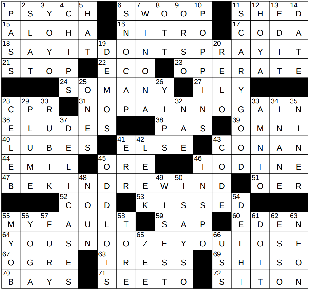 • 64A Rhyming advice to a procrastinator : YOU SNOOZE, YOU LOSE