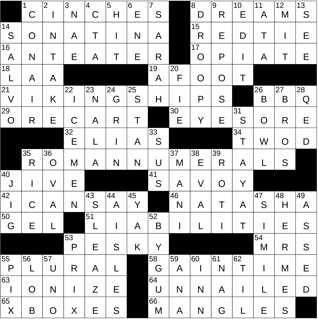 41A “Stompin’ at the ___” (Benny Goodman standard) : SAVOY