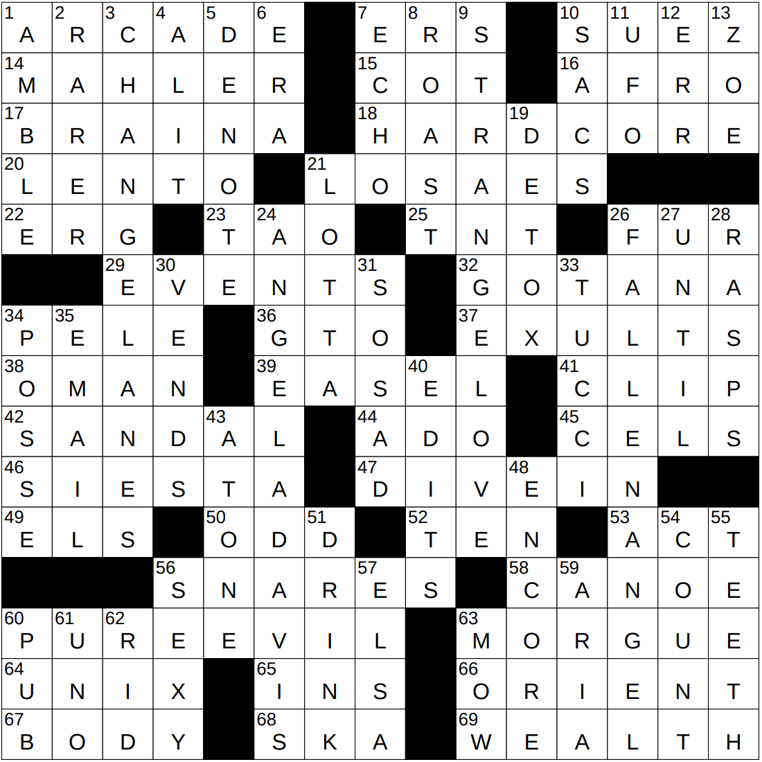 • 26D Heavenly outcast … or a hint to something found three times in this puzzle : FALLEN ANGEL