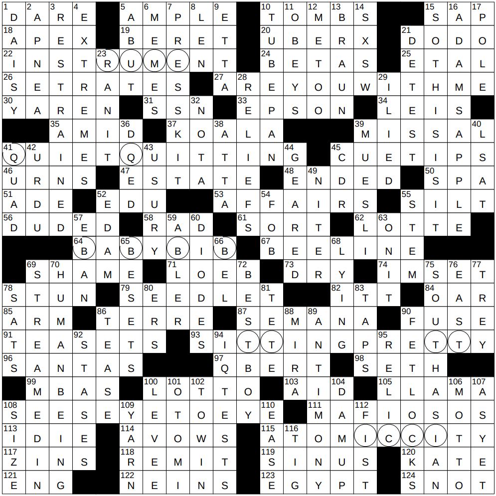 45A The circles in 41-Across? : CUE TIPS